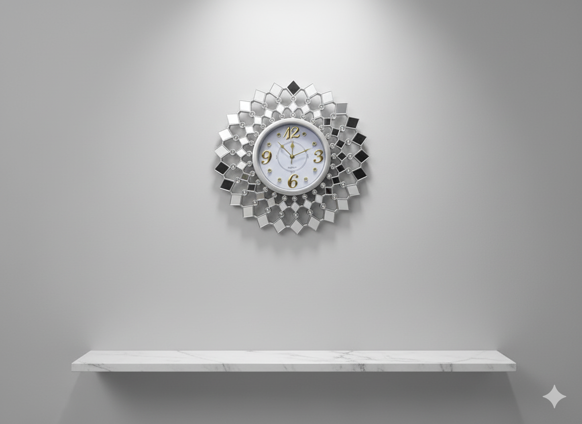 আধুনিক ইন্টেরিয়র স্টাইলের সাথে মিলিয়ে তৈরি এই ঘড়িটি জ্যামিতিক ডায়মন্ড প্যাটার্ন ও স্টোন ডেকোরেশনের সমন্বয়ে অত্যন্ত আকর্ষণীয়। যে কোনো ঘরের দেয়ালে এটি তৈরি করে ভিন্নরকম শিল্পময় লুক।